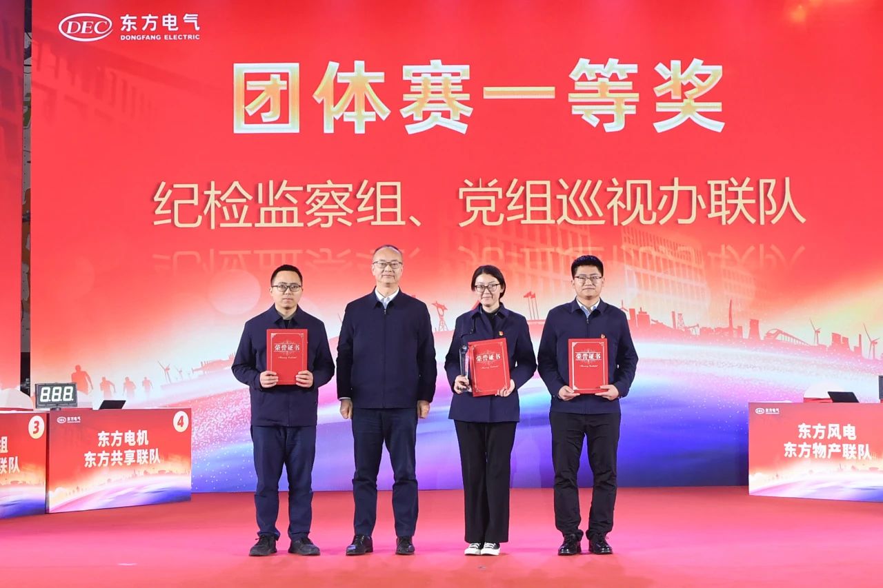 经过团体赛“自信自强、守正创新、勇毅前行”三个环节角逐,最终纪检监察组党组巡视办联队荣获一等奖,东方电机东方共享联队、东方重机东方自控联队荣获二等奖,东方锅炉东方研究院联队、东方汽轮机东树新材料联队、东方国际东方武核联队荣获三等奖。展馆讲解个人赛东方电机蒲颖荣获一等奖,东方自控王媛媛、东方锅炉王艺澎荣获二等奖,东方电机王艺蒙、德阳监督中心潘昊、东方物产李香杜荣获三等奖。