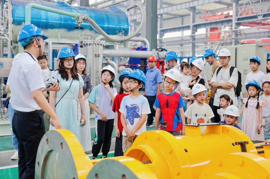东方汽轮机开展“制造零距离·能源科普行”国企开放日暨劳模工匠家庭日活动,劳模工匠、岗位标兵代表及家属140余人欢聚一堂。大家参观了东汽精神文化长廊、数字集控中心、全重科技展厅、数字化车间,近距离了解国之重器的制造过程,真正实现了“制造可观、能源可感、科普有趣”;在趣味科普环节中,孩子们在材料实验室和“安全小屋”中进行了“钛合金小超人”试验,学习了灭火器使用方法。