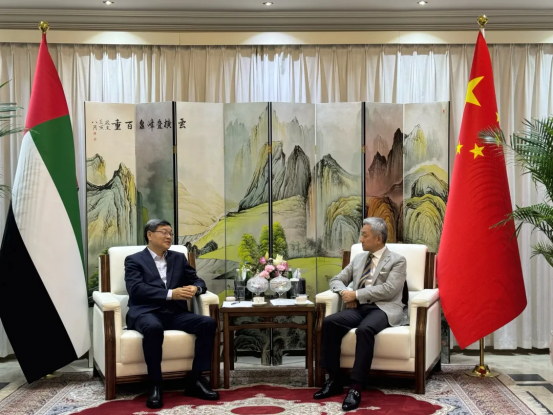长期以来的大力支持,并与中国驻阿联酋大使张益明就当地政治经济形势、社会发展及能源产业合作机遇等议题进行了沟通交流。